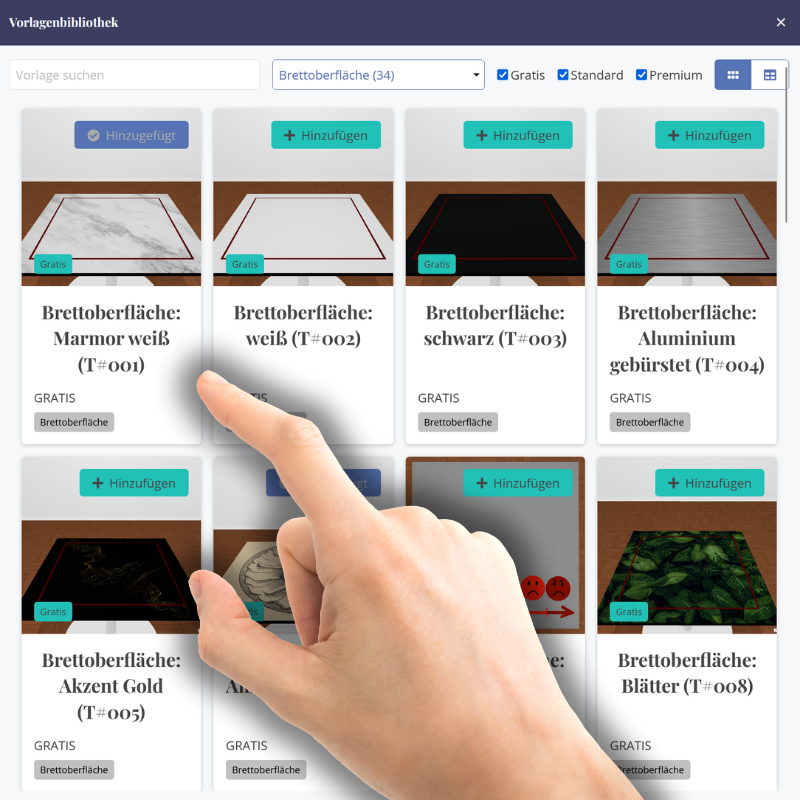 Stöbere in der Vorlagenbibliothek und wähle deine Lieblingsoberflächen aus