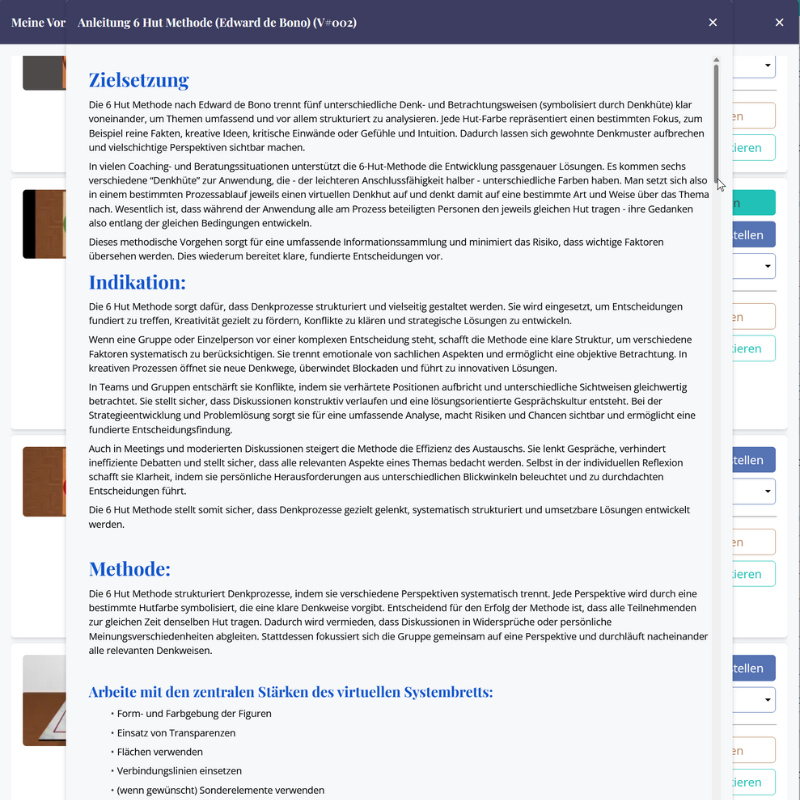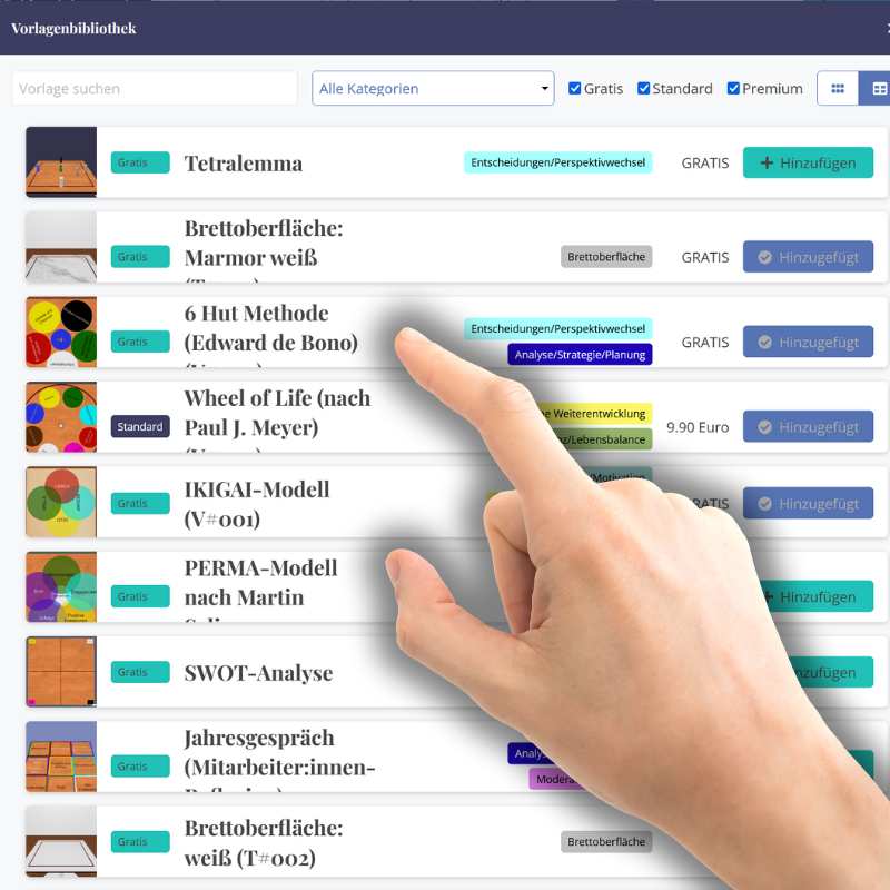 Stöbere in der Vorlagenbibliothek und wähle die gewünschte Coaching-Methode aus