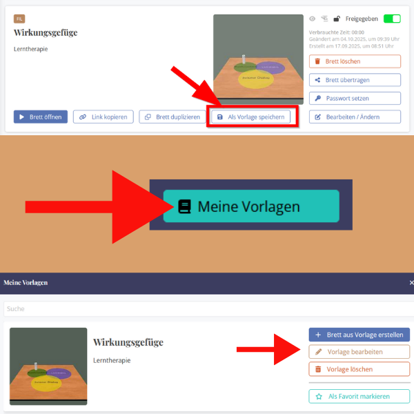 Du findest sie anschließend unter „Meine Vorlagen“ und kannst sie jederzeit als Grundlage für neue Bretter nutzen
